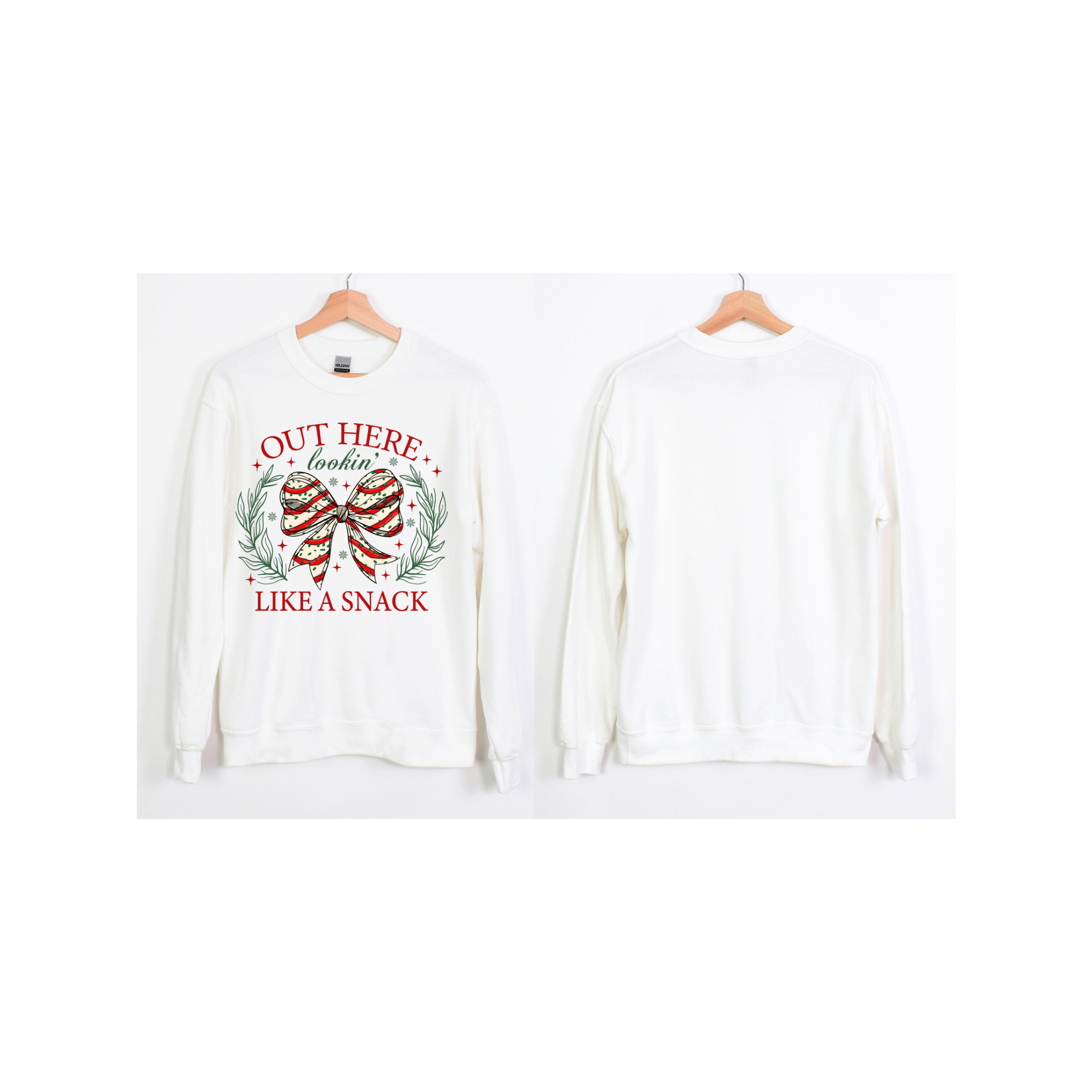 Celebrate the season with a playful twist on holiday style. This DTF-printed shirt features a festive Christmas tree cake design paired with the cheeky phrase "Out here looking like a snack"—perfect for anyone who loves witty fashion and seasonal humor. The high-quality direct-to-film printing ensures vibrant, long-lasting graphics that won't fade after washing. Whether you're heading to a holiday party, family gathering, or just spreading festive cheer with a smile, this shirt delivers comfort and personality in one delicious package. Make this holiday season unforgettable with a tee that's as fun as it is fashionable.